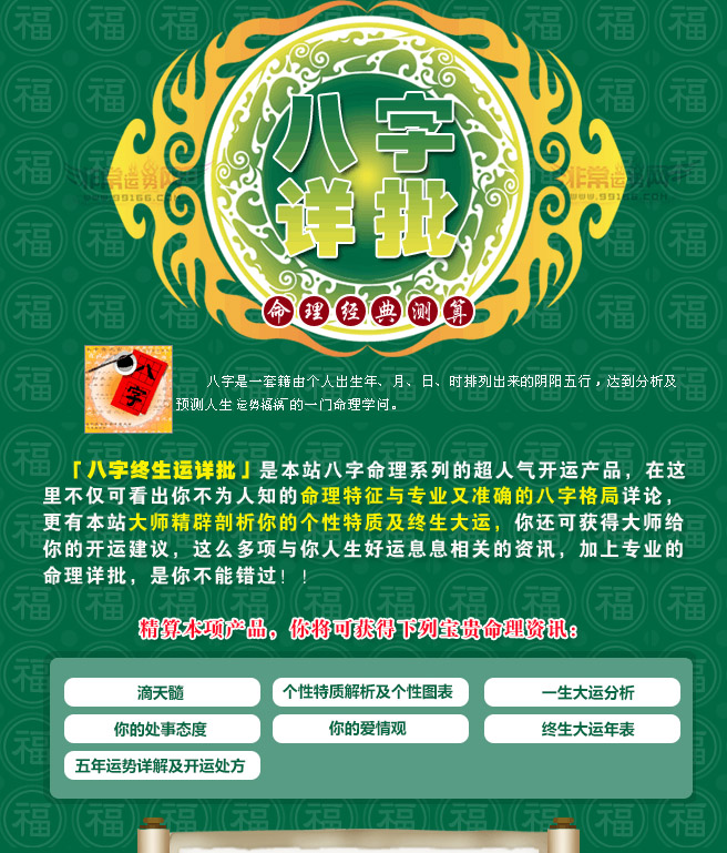 您当前测算的命理项目是:经典测算-八字终身运程详批