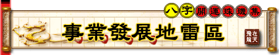 | 要看出一个人事业发展不利的地区,其实只要深入其八字中,分析出八字忌神所在五行,并由忌神五行所代表的地形或气候区,如此就可找出答案,本事业发展地雷区是流传中国久远的八字实用资讯,值得你研究参考! |